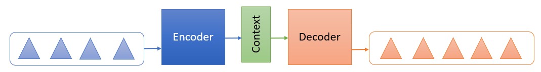 Within the model, there contains Encoder and Decoder. The Encoder receives the original text and convert the text into a Context vector that the Machine can read. Then, the Decoder does the job of generating a new sequence of items based on the Context vector.